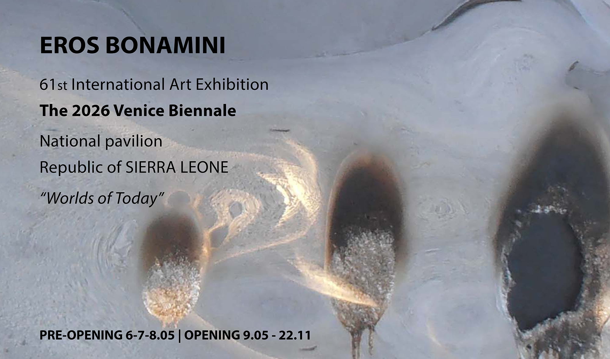 National pavilion of the Republic of Sierra Leone Exhibited Artists: Eros Bonamini Opening 09/05/2026Closing 22/11/2026 Location: Liceo Artistico Statale M. Guggenheim – Sestiere Dorsoduro, 2613 - 30123 Venezia